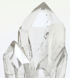 - Clear Quartz (shown), found in the USA & Brazil, used in meditation to open the mind and heart to higher guidance. Clear quartz will amplify whatever energy or intent is programmed into it. This can be used to intensify healing, spiritual growth, or achieve a goal.